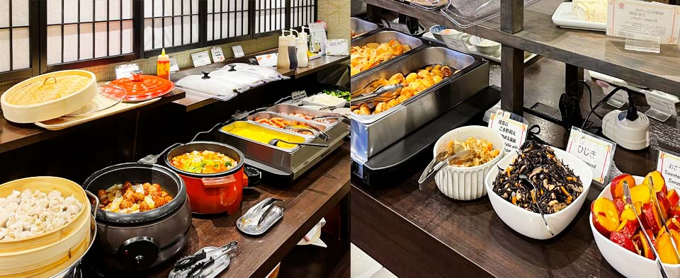 たびのホテル飛騨高山のご朝食は、飛騨の食材を積極的に取り入れたブッフェスタイルのお食事をお楽しみください。